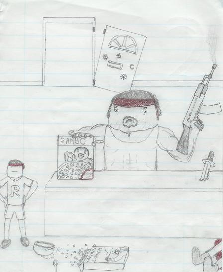 "I killed your mom to get you this cereal" "Thanks Rambo!" |
